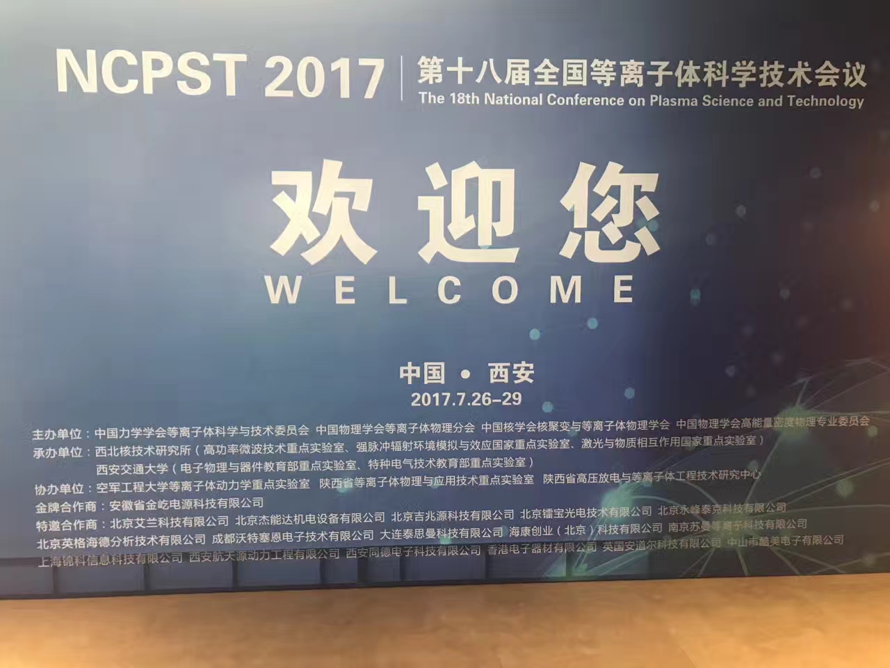 2017年7月26日至29日,由西北核技术研究所和西安交通大学联合承办的“第十八届全国等离子体科学技术会议”在西安召开,我司作为本届会议的赞助商,也带着我司的最新产品——固态微波源与固态射频电源和最新研发技术参加了本次会议。